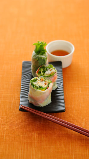 • Sauce trempette : Un mélange de sauce hoisin, de beurre de cacahuète et d’un filet de jus de citron vert donne aux rouleaux cette petite touche piquante.