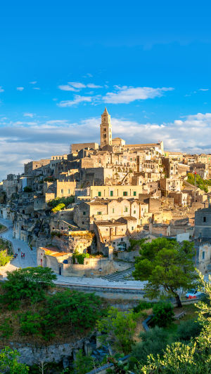 Plongez dans les <b>Sassi di Matera</b>, site inscrit au patrimoine mondial de l’UNESCO depuis 1993, où les habitations remontent à l’époque <b>néolithique</b>. Jadis surnommée la « honte de l’Italie » à cause de sa pauvreté d’après-guerre, Matera brille désormais comme Capitale européenne de la culture en 2019. Perdez-vous dans les quartiers <b>Sasso Barisano</b> et <b>Sasso Caveoso</b>, où maisons troglodytes et ateliers s’intègrent parfaitement dans un paysage escarpé.