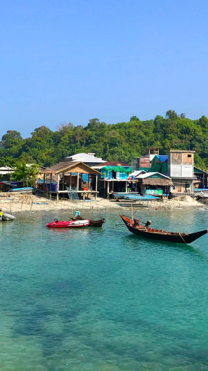 Plus proche que les autres criques, la plage de Maungmagan offre le plus de commodités : restaurants simples, étals de fruits et chaises longues. Marche vers le nord pour trouver des zones plus calmes, ou vers le sud en direction de la passerelle de l’île. Des bus publics et véhicules partagés desservent ce lieu depuis la ville (0,50 à 1 $) ; un tuk-tuk coûte 3 à 6 $ aller simple.