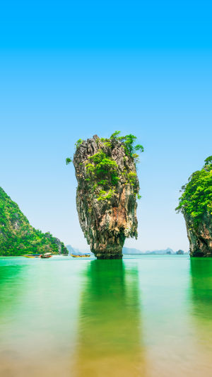 Les photos de l’île de James Bond sont partout, mais elles n’expliquent pas la sensation d’y être. Les formations calcaires ne s’étendent pas à l’horizontale — elles montent à la verticale. L’eau, peu profonde et calme, reflète les falaises en formes fragmentées. Quand les bateaux dérivent au lieu de filer, la baie donne l’impression d’être suspendue.