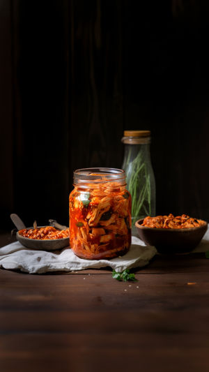 Une fois le mélange prêt, il est placé dans des récipients hermétiques ou des bocaux et laissé fermenter à température ambiante pendant quelques jours avant d’être mis au réfrigérateur. Plus le kimchi fermente, plus son goût devient fort et acide. Certains préfèrent le consommer frais et croquant, tandis que d’autres apprécieront sa version plus mûre, après plusieurs semaines de fermentation, où il devient plus doux et piquant.