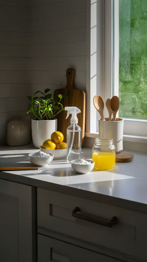 Vous voulez une surface brillante et une odeur agréable ? Le citron est parfait. Il dissout la graisse et laisse un parfum frais et naturel. Vous pouvez ajouter le jus d’un citron à votre mélange vinaigre-eau, ou frotter directement une moitié de citron sur les zones grasses (comme les grilles de la plaque ou les robinets). Laissez poser un instant, puis rincez ou essuyez.