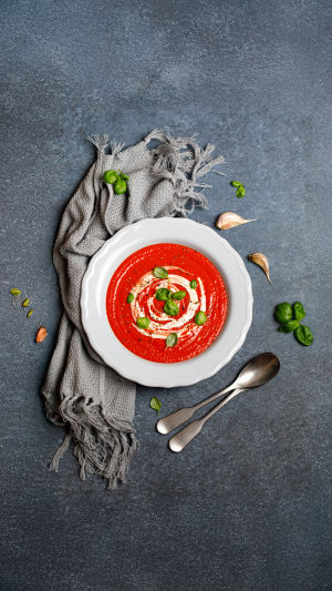 • Mélange du basilic frais haché à une soupe de tomate bien chaude.