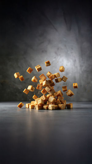 Les croûtons sont de petits dés de pain qui deviennent délicieusement croustillants et dorés au four. Idéaux pour ajouter du croquant aux salades, aux soupes, ou simplement à déguster seuls comme en-cas, ils apportent une touche de gourmandise à chaque bouchée.