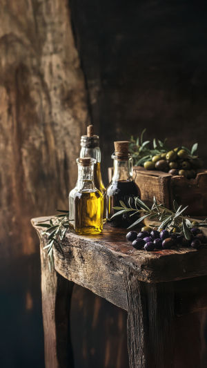 Une nature morte composée de bouteilles d’huile d’olive et de vinaigre balsamique n’est pas qu’un simple ornement — c’est une célébration de goût, de couleur et de tradition. Une disposition réfléchie apporte de la beauté à notre cuisine et nous rappelle que même les objets du quotidien peuvent inspirer la créativité.