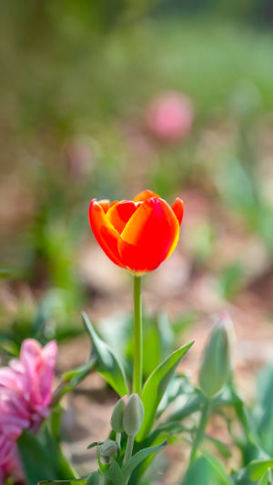 Toutes les tulipes rouges ne se ressemblent pas, et c’est là tout leur charme. Certaines ont des pétales d’un cramoisi profond, riche et velouté, tandis que d’autres brillent d’un écarlate vif, comme de petites flammes posées au sol. On devine parfois des reflets orangés ou roses sur les bords, créant une mosaïque colorée à la fois dynamique et harmonieuse. Ensemble, elles forment un spectacle saisissant où chaque pas devient une pause contemplative.