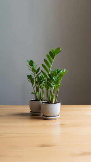 Pour un style moderne avec un entretien minimal, le ZZ Plant est idéal. Ses feuilles brillantes et cireuses stockent l’eau, ce qui permet de l’arroser une fois par mois seulement. Il supporte parfaitement la faible luminosité et l’air sec, et résiste très bien à la sécheresse.