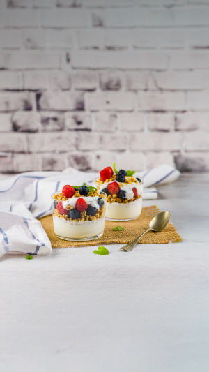 Un parfait peut ressembler à un dessert servi dans un verre, mais ce n’est en réalité qu’un empilement d’aliments sains pour le petit-déjeuner. Le yaourt crémeux apporte des protéines, les fruits ajoutent des vitamines et une douceur naturelle, et une pincée de granola offre du croquant et des fibres. On a l’impression de se faire plaisir à chaque cuillérée, tout en étant nourri comme par un repas matinal équilibré. Pour lui donner un côté plus dessert, arrosez d’un filet de miel ou ajoutez un peu de chocolat noir râpé sur le dessus. Vous pouvez aussi varier les couches—essayez la mangue tropicale avec des copeaux de noix de coco, ou des baies avec des amandes pour un croquant légèrement acidulé.