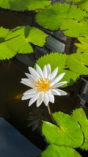 Le lotus blanc est un symbole de pureté et de sérénité, flottant avec élégance à la surface d'eaux calmes. Ses larges feuilles vertes et ses fleurs délicates et parfumées transforment n'importe quel étang en une oasis de tranquillité.
